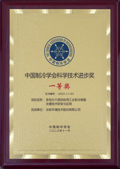 中國制冷學會科學技術進步獎一等獎_多組分介質回收用工業制冷裝備關鍵技術研發與應用