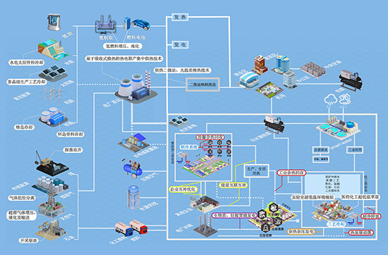 建立冷/熱/水/汽/電/污/廢等資源的多能互補系統,實現產業園區一體化集成功能系統,通過對能源轉換、能源應用、余能回收、廢棄物處理各環節的整體設計、統一規劃和分級利用,實現從-271℃—200℃范圍內的能源階梯級利用、余能綜合利用、能源高效利用,大幅度提高能源的總體效率,以智慧生態平臺優勢,實現設備、功能、資源的多重集約,為客戶提供高附加值的解決方案。